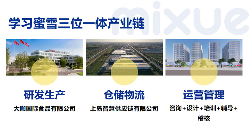 走进蜜雪冰城——蜜雪冰城是怎么炼成的1997年,大学时期的张红超在郑州开启了他一生的甜蜜事业——蜜雪冰城,一个专为年轻人打造新鲜冰淇淋与茶饮的全国连锁品牌,并确立了蜜雪冰城的经营使命:“让全球每个人享受高质平价的美味”。为此他带领蜜雪人啃了10余年的硬骨头,自建工厂、自建供应链,自产核心原材料。为了做好每一支冰淇淋,每一杯茶饮,蜜雪冰城品牌由三大公司共同服务,蜜雪冰城股份有限公司主导管理运营;大咖国际食品有限公司主导研发生产;上岛智慧供应链有限公司提供仓储物流服务。三大公司共同协作形成完整产业链,保障蜜雪冰城在国内饮品行业快速成长!