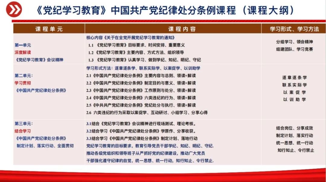 会议指出,要抓住学习重点,在学习贯彻《中国共产党纪律处分条例》上下功夫见成效。坚持逐章逐条学、联系实际学,抓好以案促学、以训助学,教育引导党员干部准确掌握其主旨要义和规定要求,进一步明确日常言行的衡量标尺,用党规党纪校正思想和行动,真正使学习党纪的过程成为增强纪律意识、提高党性修养的过程。